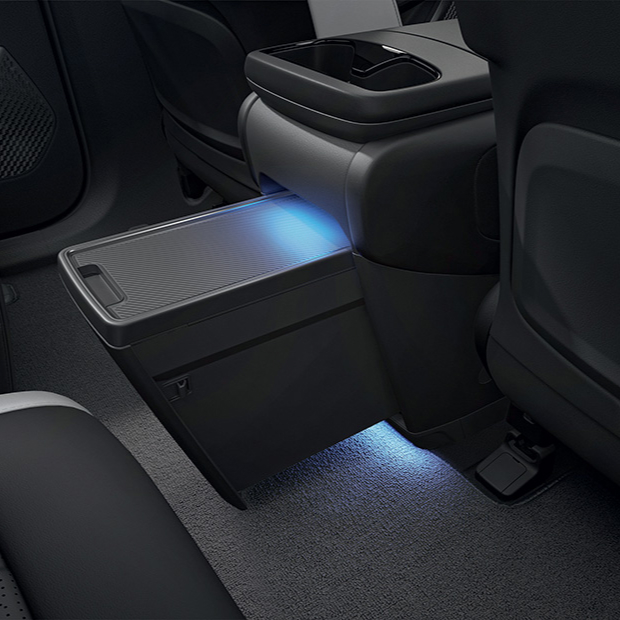 Центральная консоль оснащена дополнительными емкостями для хранения вещей и регулируемым подлокотником, позволяющим выбрать удобное положение для руки.