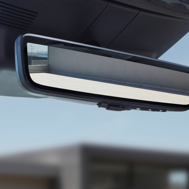 Цифровое зеркало при помощи рычажка в нижней его части переключается между режимами оптического зеркала и дисплея камеры, обеспечивая более безопасный задний обзор.